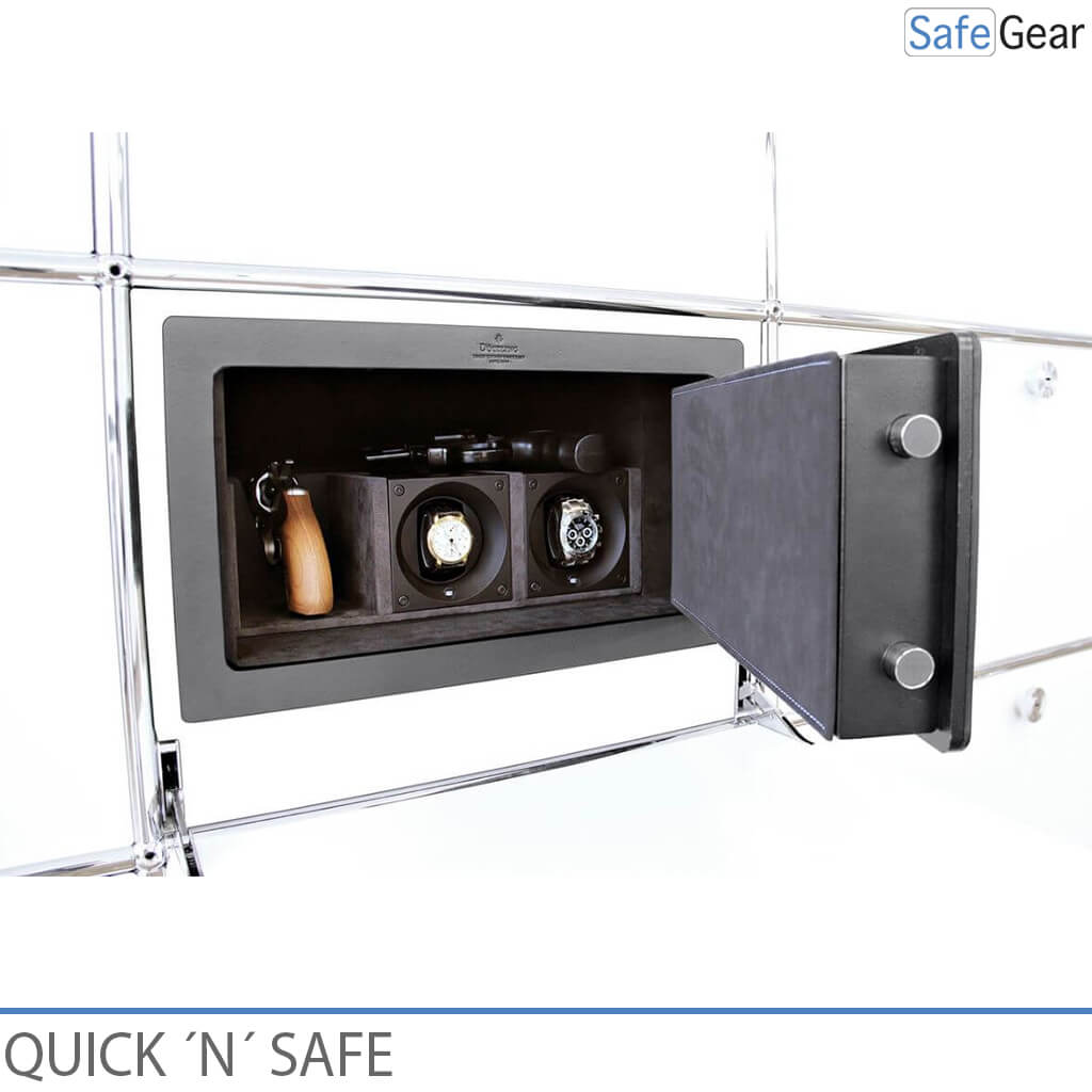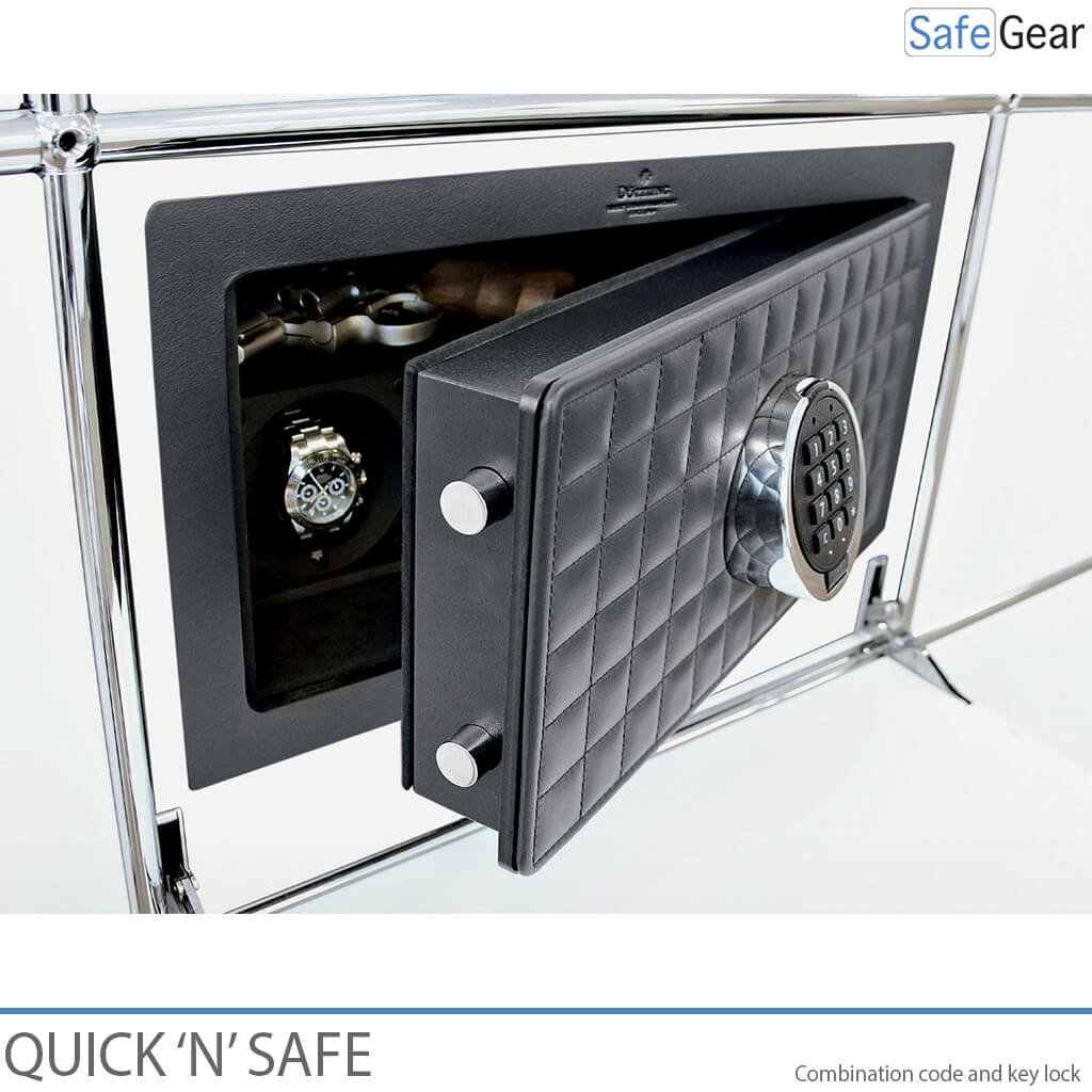 The Quick ‘n’ Safe combines luxury design and time management. Its compact size makes it possible to install the safe in existing decor: It can be easily integrated into wardrobes, chests, desks, or other pieces of furniture.