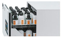 Safety cabinet is equipped with user-friendly drawers that remain open at any position and allow access to all containers. The lockable system protects the under bench cabinets from unauthorized use.